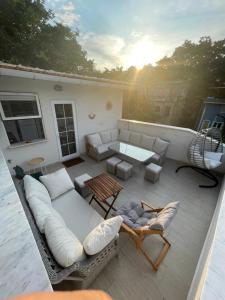 Apartmán disponuje šesti ložnicemi a šesti koupelnami vybavenými sprchami i bidety. Je zde k dispozici také šampon a mýdlo. Hosté mohou využít plně vybavený kuchyňský kout s kuchyňským nádobím, troubou, varnou deskou, lednicí i kávovarem. Součástí areálu je sdílený kuchyňský prostor. Obývací prostory zahrnují dva obývací pokoje zařízené televizory s přístupem ke streamovacím službám a jídelní kouty uvnitř i na balkóně s výhledem do zahrady.