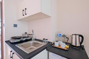 El alojamiento cuenta con un dormitorio que incluye una cama y un futón adicional para dormir. La pequeña cocina está equipada con placa para cocinar, frigorífico, tostadora y facilidades para preparar té y café. El baño dispone de ducha tipo walk-in y secador además se proporcionan toallas.