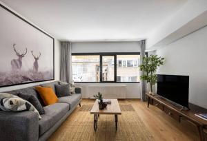 Wewnątrz mieszkania goście mają do dyspozycji w pełni wyposażoną kuchnię zmywarką do naczyń piekarnikiem płytą grzewczą lodówką oraz niezbędnym sprzętem kuchennym ułatwiającym przygotowanie posiłków. Łazienka wyposażona jest w szlafroki suszarkę do włosów ręczniki i pościel dla komfortowego pobytu. Dodatkowo dostępne są żelazko garderoba lub szafa ogrzewanie pralka miejsce do pracy wanna z hydromasażem wewnątrz pomieszczenia oraz podstawowe kosmetyki takie jak szampon.