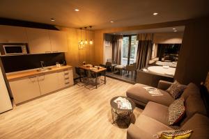 Las habitaciones están climatizadas y disponen de cocina americana equipada con nevera, microondas, hervidor eléctrico y utensilios. Cada una tiene cama individual, baño privado con ducha o bañera (las suites incluyen bidé), además de área de descanso y comedor. Algunas ofrecen vistas a la ciudad o al mar. También cuentan con paredes insonorizadas, televisor pantalla plana, secador de cabello, plancha para ropa, almohadas sin plumas y caja fuerte.
