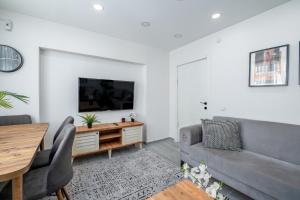 Este apartamento para no fumadores cuenta con aire acondicionado, calefacción y baño privado equipado con ducha, secador de pelo y acondicionador. La zona de estar incluye televisión y plancha con tabla, dispone también de cocina americana equipada con horno, fogones, nevera, utensilios y cafetera/tetera. Se proporcionan ropa de cama y toallas.