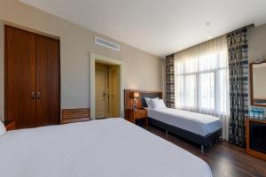 Alle klimatisierten Zimmer verfügen über mindestens ein Bett sowie moderne Ausstattung wie Schreibtisch, Wasserkocher, Minibar, Safe und Flachbildfernseher mit Satellitenkanälen und Streaming-Diensten. Jedes Zimmer besitzt ein eigenes Bad mit kostenlosen Pflegeprodukten wie Shampoo und Seife. Bademäntel und Hausschuhe sind vorhanden. Schalldichte Wände sorgen für eine ruhige Atmosphäre. Einige Zimmer sind durch Verbindungstüren miteinander verbunden.