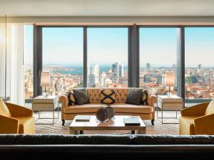 Номера оформлены со вкусом и оснащены окнами от пола до потолка с видом на город или Босфор. Предусмотрены зоны отдыха, рабочие столы, кофемашины Nespresso, моторизованные шторы с управлением одним касанием и обеденные столы. Ванные комнаты оборудованы дождевыми душами либо ваннами, некоторые имеют частные подогреваемые турецкие бани с аутентичными смесителями и раковинами. В отдельных апартаментах с одной спальней предусмотрены приватные балконы с видом на Босфор или исторический полуостров, гардеробные комнаты, выбранные люксы дополнительно оснащены мини-кухнями или террасами с гидромассажными ваннами. Для определённых категорий номеров открыт доступ в Executive Lounge с расширенным набором услуг включая обслуживание батлером.