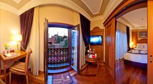 Les suites spacieuses sont richement décorées avec des meubles chics et des parquets. Certaines chambres disposent de balcons offrant une vue sur la ville ou sur des sites remarquables tels que Sainte-Sophie et la Mosquée Bleue. L’hébergement comprend des chambres ainsi que des espaces salons équipés de canapés moelleux, climatisation, chaussons, presses-pantalons disponibles dans les installations blanchisserie, coffres-forts incluant des coffres pour ordinateurs portables pour plus de sécurité, chauffage pour les périodes froides ainsi que patios attenants à certaines chambres. Les salles de bains sont dotées peignoirs et shampooing tandis que certaines suites comprennent un spa privé ou un bain à remous.