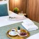 Номера представлены двойными, двухместными с раздельными кроватями, трёхместными апартаментами и вариантами для семейного размещения. Каждый номер оборудован кондиционером, отдельным входом, телевизором с плоским экраном и кабельным телевидением, минибаром и шкафом для одежды. Ванные комнаты оснащены душевыми кабинами и фенами, некоторые номера дополнительно укомплектованы сейфами и электрическими чайниками. Для дополнительного комфорта при заселении гостям предоставляются шоколад или печенье вместе с банными халатами.