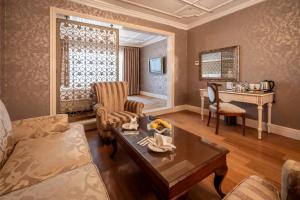 The Central Palace offers free Wi-Fi throughout its premises alongside complimentary parking in covered garage spaces that include electric vehicle charging stations. Wellness amenities comprise a hi-tech gym furnished with cardio equipment plus an on-site spa featuring a sauna, whirlpool tub and traditional Turkish hammam decorated in authentic motifs. Guest services include concierge assistance at reception along with laundry facilities, faxing and photocopying options, an airport shuttle service is also available.